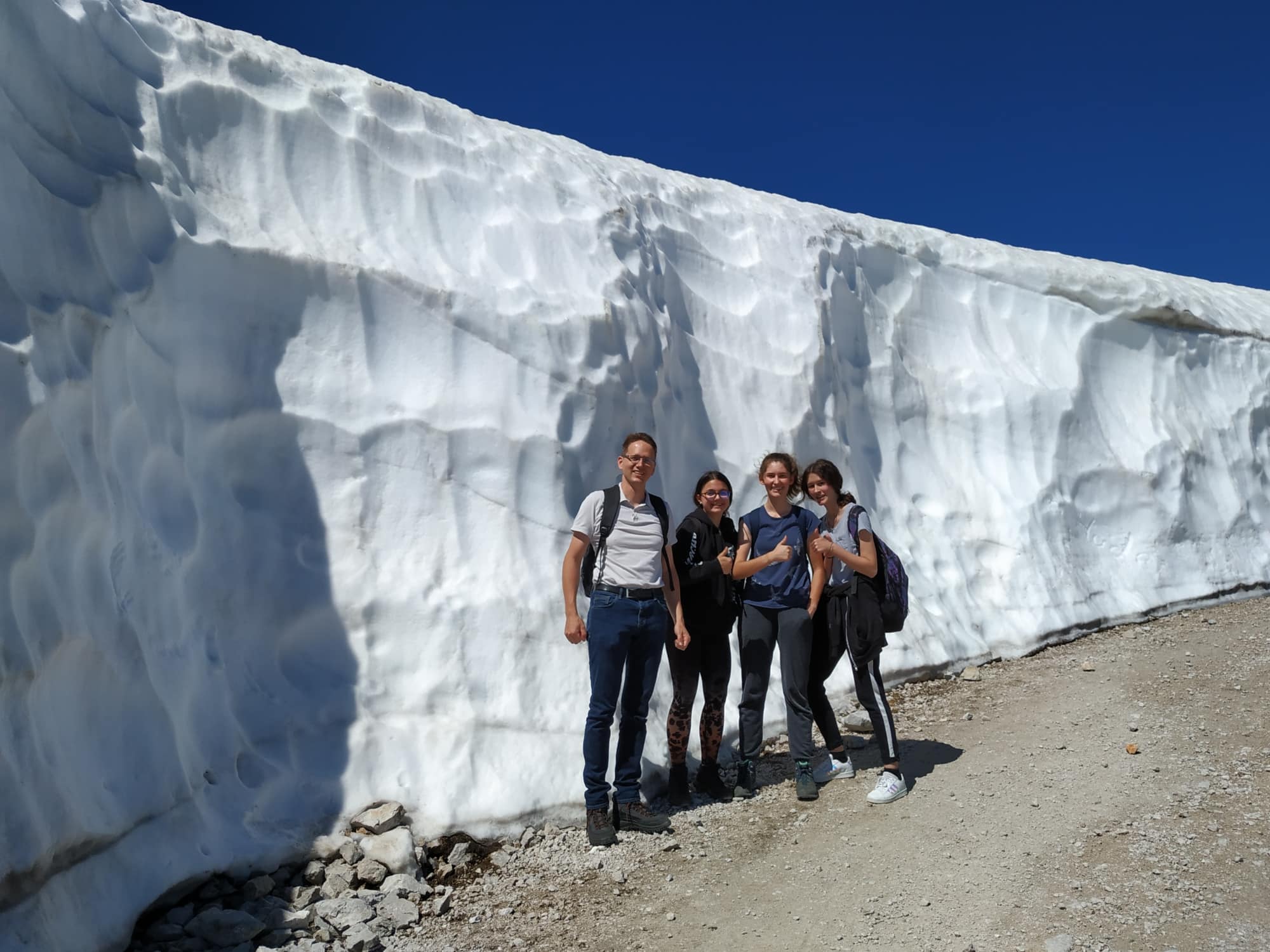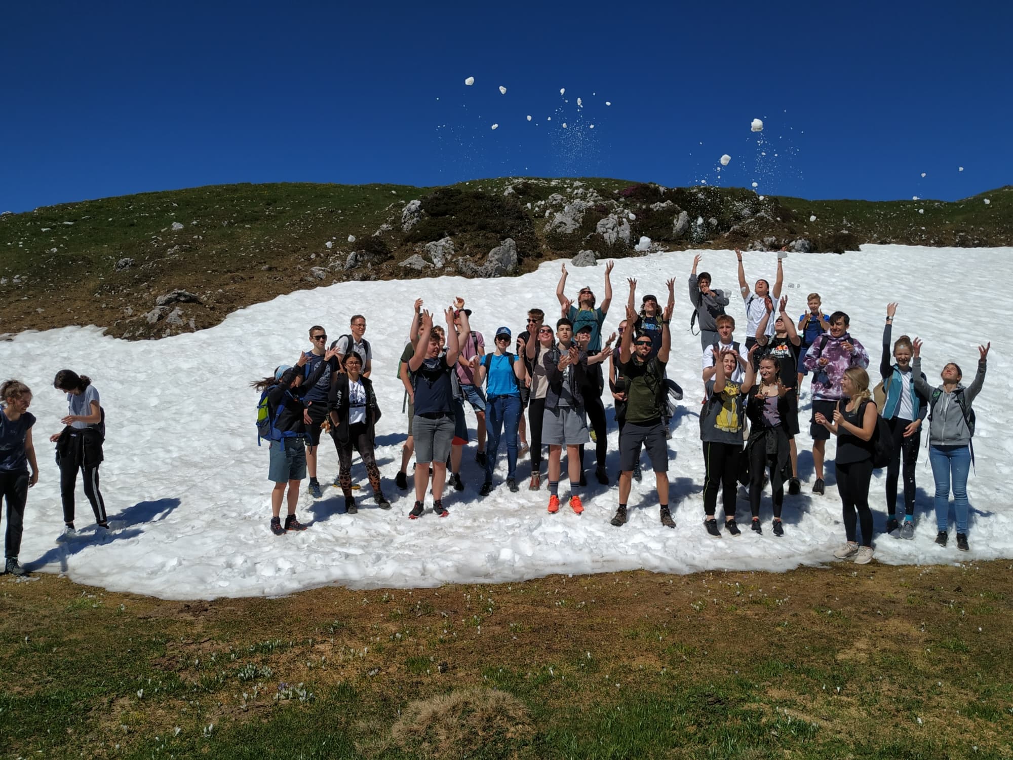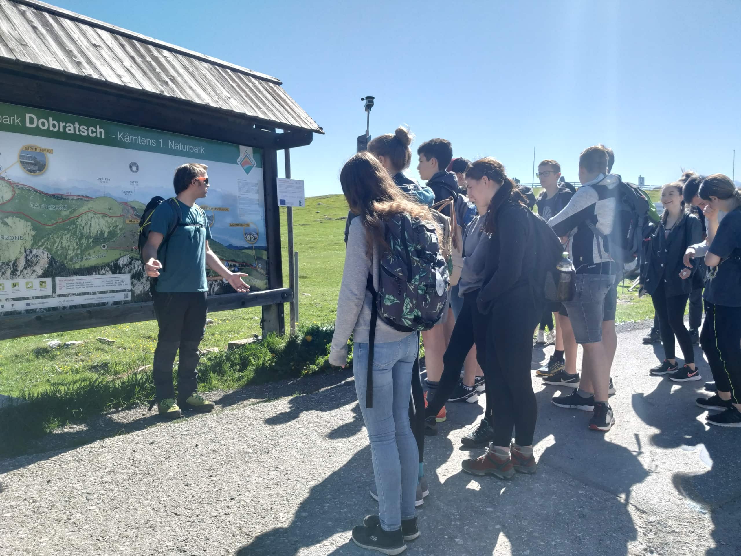Die drei Ranger des Naturparkes Dobratsch-Schütt führten die Schüler/innen über den gemütlichen Anstieg auf den 2166 m hohen Gipfel. Während der Wanderung gingen die Ranger auf viele unterschiedliche Themen ein, wie zum Beispiel den Naturpark, die Tier- und Pflanzenwelt und die Geologie. Vor allem die vielen Fossilien (Muscheln/Korallen) so hoch am Berg sind beeindruckende Zeugen der Gebirgsbildungsprozesse, bei denen sich der ehemalige Ozeanboden der Thetys aufgefaltet hat. Aber auch die Gämsen und Alpendolen sowie die diversen Almblumen, darunter auch seltene Orchideenarten, konnten auf dem rund 400 m hohen Anstieg betrachtet werden.
