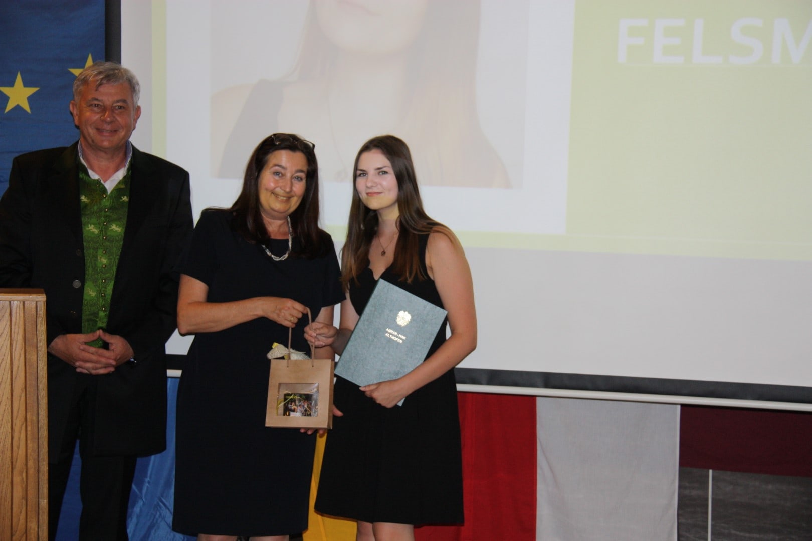 Nach der Rede von Hr. Dir. Mag. Hannes Scherzer und den emotionalen Abschiedsreden der Klassenvorständinnen Mag. Evelin Leitgeb und Mag. Angelika Granitzer, die von lustigen Bildern und Musik begleitetet waren und die letzten 5 gemeinsamen Jahre ein letztes Mal Revue passieren ließen, folgte die Überreichung der Reife- und Diplomprüfungszeugnisse.