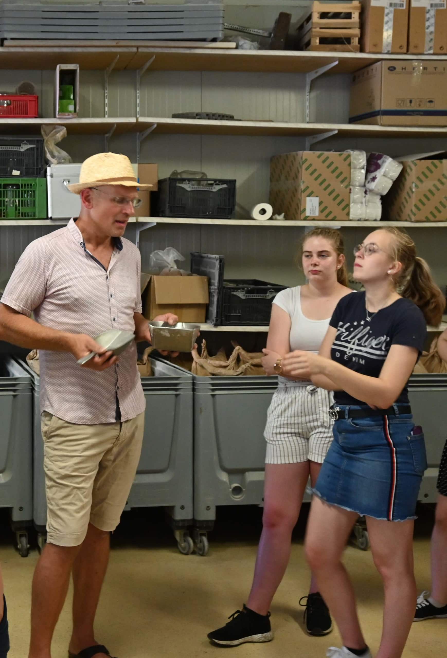 Herr Thausing stellte uns seinen Betrieb in allen Einzelheiten vor. Es begann mit einer Hofrunde, ging über die Getreideverarbeitung ins Lager und dann zur Getreide- und Ölmühle. Danach landeten wir in der Bäckerei und bestaunten auch den Verkaufswagen. Zum Schluss durften wir die Öle verkosten. Schade nur, dass wir vom hausgemachten Brot und Feingebäck nur hörten, es aber nicht verkosten konnten. Insgesamt war es trotzdem eine sehr interessante Exkursion, bei der wir viel über Getreidebau, -verarbeitung und -vermarkten lernen konnten.