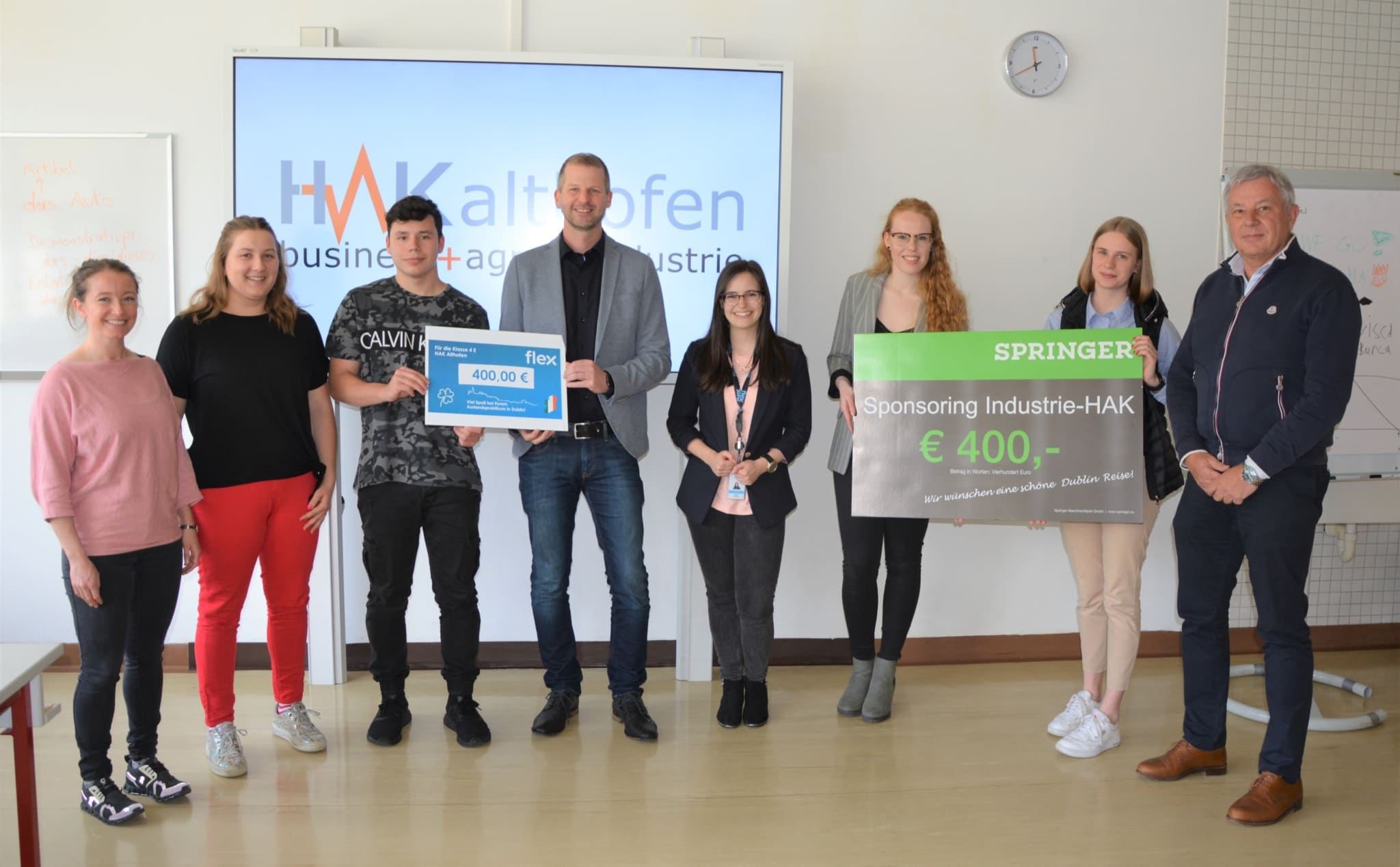 Am 3.5.2022 war es so weit. Flex-Geschäftsführer Mag. (FH) Martin Reiner, GM Assitant Jasmin Pucher, BA MSc und die Vertreterin des Unternehmens Springer Maschinenfabrik HR Assistant Anita Lassnig, BA MA überreichten in der Schule stellvertretend für alle unterstützenden Betriebe den Schülerinnen und Schülern einen Scheck als Finanzierungsbeitrag. Weiters wurde am 9.5.2022 vor Ort im Unternehmen Fundermax von Personalchefin Mag. Martina Simma einer Schülerdelegation ebenfalls ein Sponsorbeitrag für die Reise  übergeben. Im Namen aller betroffenen Schülerinnen und Schüler möchten wir allen unterstützenden Patenfirmen, Flex, Springer Maschinenfabrik, Treibacher Industrie AG, Fundermax und Humanomed IT, nochmals ein herzliches Dankeschön aussprechen und uns für die insgesamt gute Zusammenarbeit bedanken.