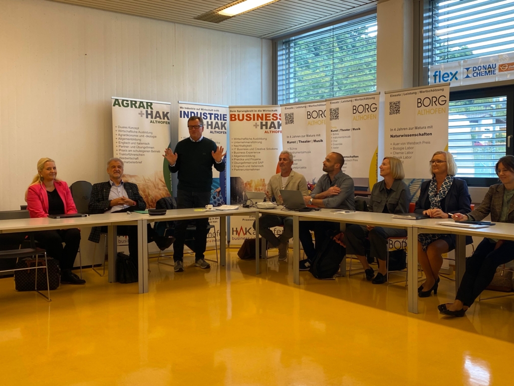 Die Handelsakademie Althofen war kürzlich Gastgeber eines bundesweiten Treffens von Bildungsclustern, bei dem Vertreterinnen und Vertreter aus Salzburg, der Steiermark und Kärnten zusammenkamen – darunter Direktoren, Administratoren, Bereichsleiter und Qualitätsmanager. HAK-Direktor Hannes Scherzer und sein Team empfingen die Gäste und sorgten für einen professionellen Rahmen für den fachlichen Austausch.