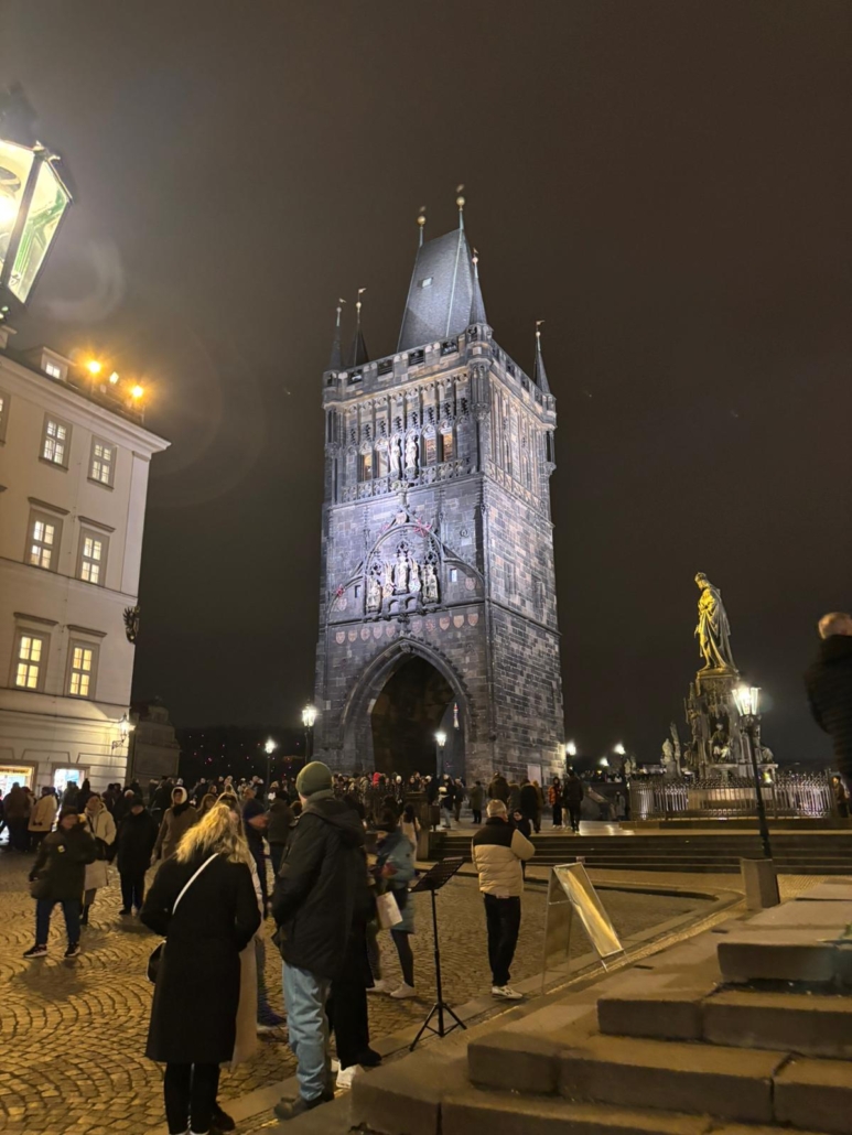In Prag, der „Goldenen Stadt“, erwartete die Gruppe ein abwechslungsreiches Programm: Bei einer Stadtführung lernten wir die wichtigsten Sehenswürdigkeiten kennen – vom Pulverturm über den Wenzelsplatz bis zur Altstadt mit der berühmten astronomischen Uhr. Die Karlsbrücke und die Prager Burg haben wir bei einer abendlichen Schifffahrt auch von der Moldau aus betrachtet. Den Tag rundete der Besuch des Prager Weihnachtsmarkts ab, auf dem es nicht nur glitzernde Stände, sondern auch typische tschechische Spezialitäten zu entdecken gab.