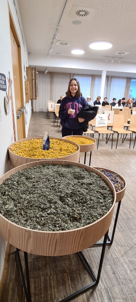 Bereits auf der Hinfahrt gab es den ersten besonderen Programmpunkt: einen Besuch bei der Firma Sonnentor im niederösterreichischen Waldviertel. Das Unternehmen ist bekannt für seine nachhaltige Produktion von Kräutern und Gewürzen. Dabei erfuhren wir viel über ökologische Landwirtschaft und faire Arbeitsbedingungen – und konnten natürlich auch die duftenden Produkte probieren.