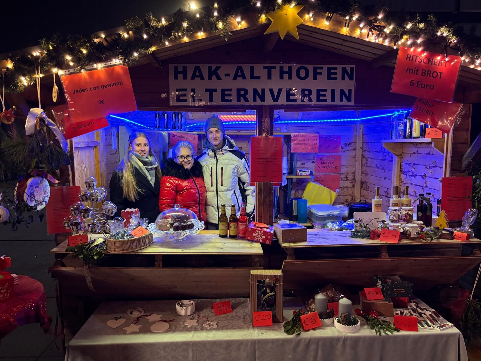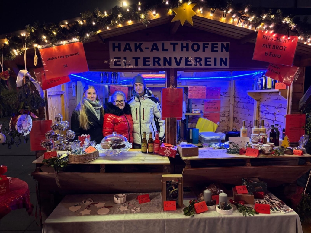 Ein herzliches Dankeschön an den Elternverein der HAK Althofen, der sich mit großem Engagement am Weihnachtsmarkt der Stadtgemeinde Althofen beteiligt hat. Mit einem liebevoll gestalteten Stand trug er nicht nur zur festlichen Stimmung bei, sondern setzte sich auch aktiv für unsere Schülerinnen und Schüler ein.