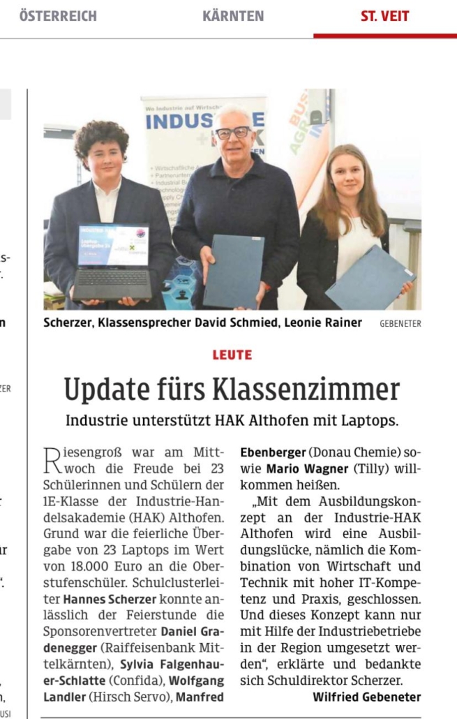 Laptopübergabe an der Industrie-HAK Althofen: Investition in digitale Zukunft