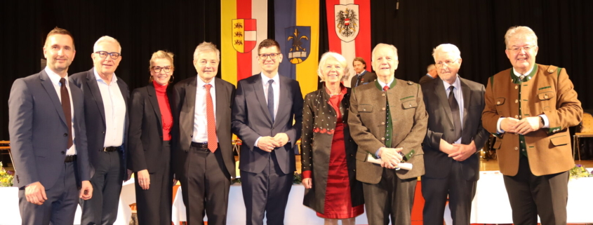 Foto v.l.n.r.: Michael Baumgartner, Dir. Hannes Scherzer, Marlene Brunner-Wogrin, Siegbert Schönfelder, Landeshauptmannstellvertreter Martin Gruber, Melitta Huber, Manfred Skalka, Günther Zenkl, Bgm. Walter Zemrosser